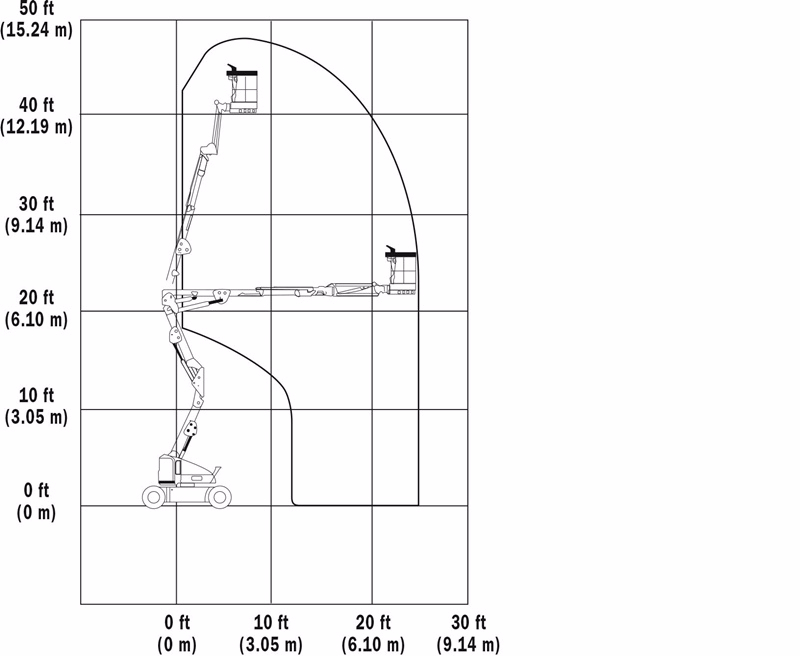 M400AJP雙動力曲臂式高空作業平臺工作范圍圖